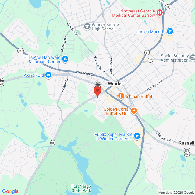 Our office is just 1.3 miles from Fort Yargo State Park.